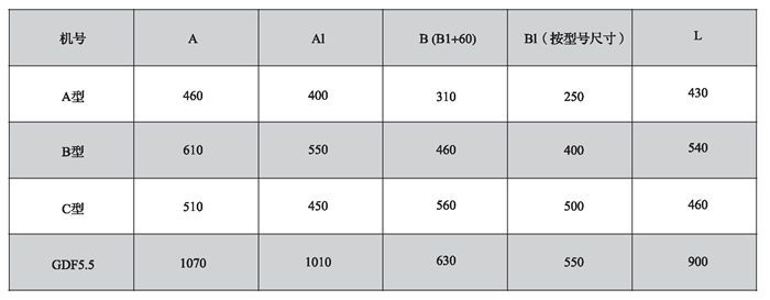 注: A型、B型、C型三檔規(guī)格的尺寸以風(fēng)量為依據(jù),詳見(jiàn)性能參數(shù).