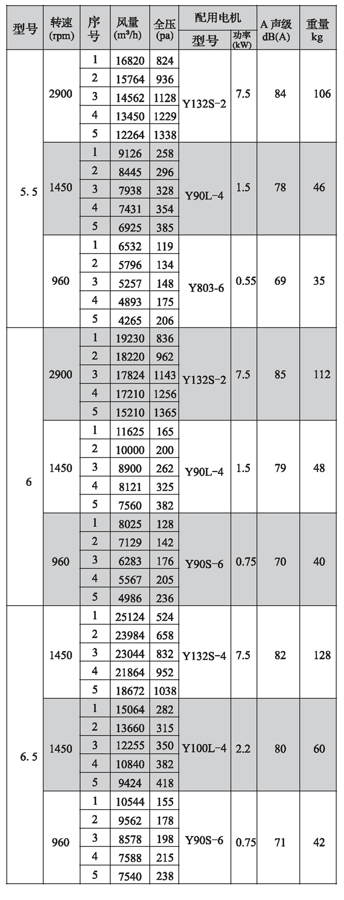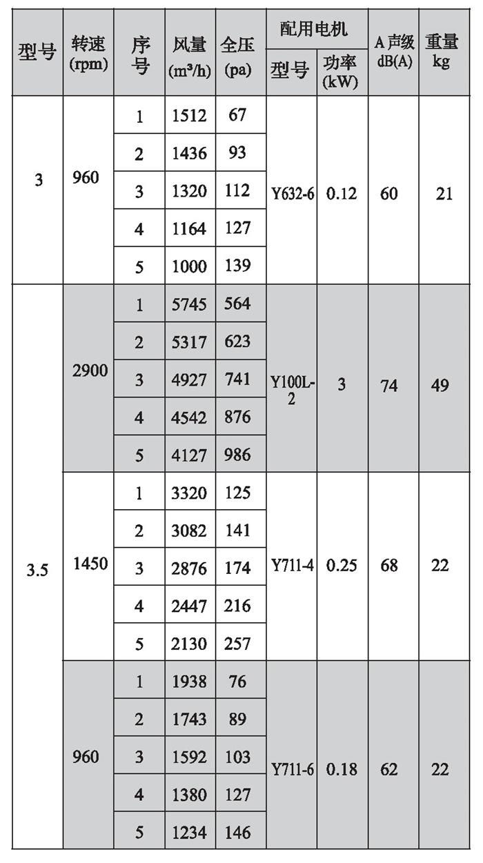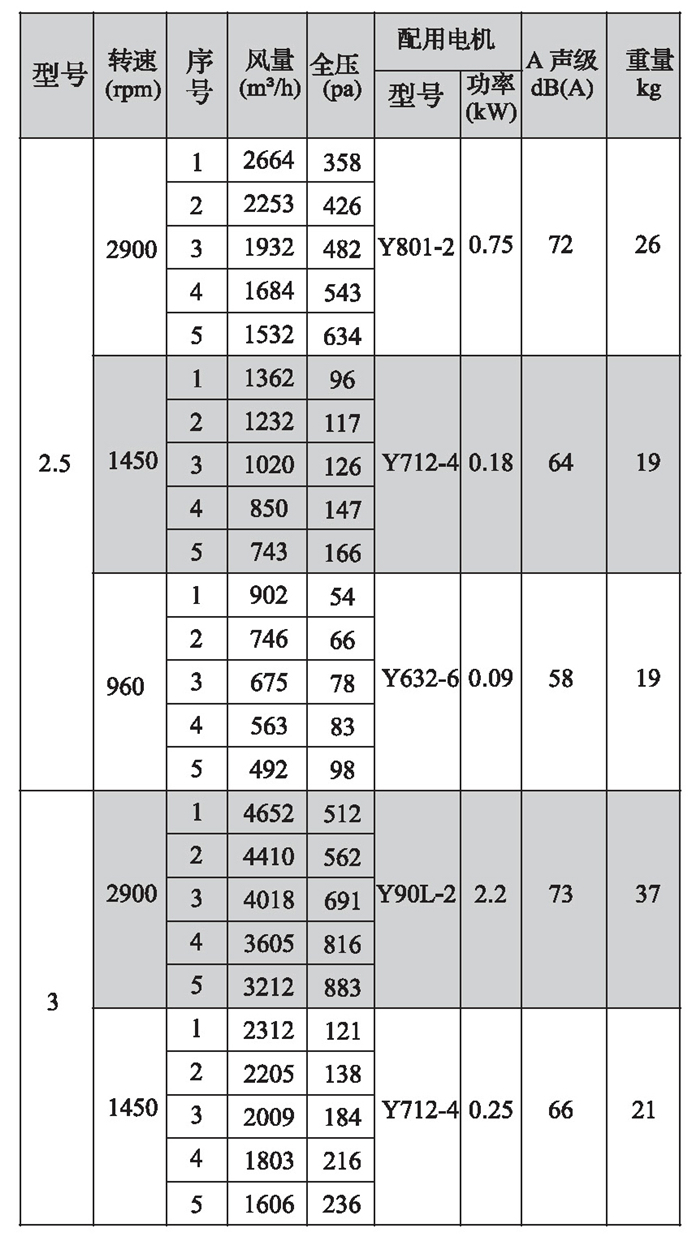 SWF-I系列混流式風機性能參數(shù)(1)