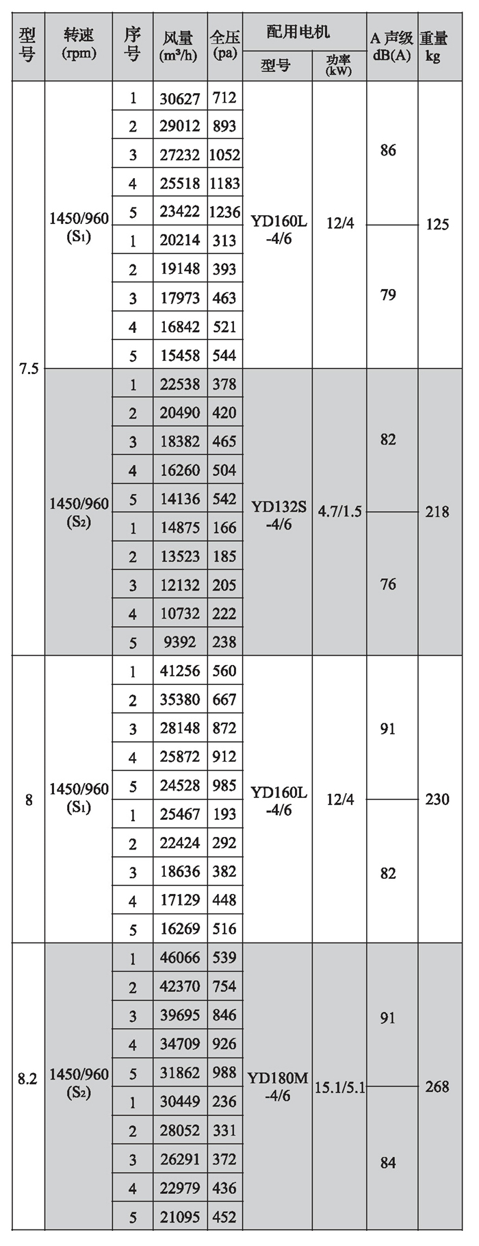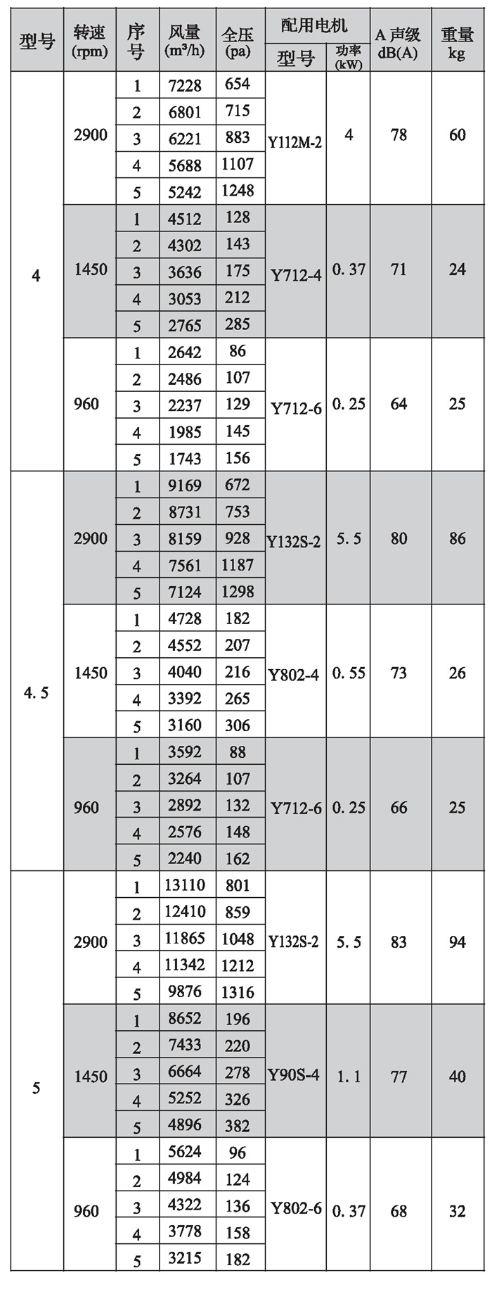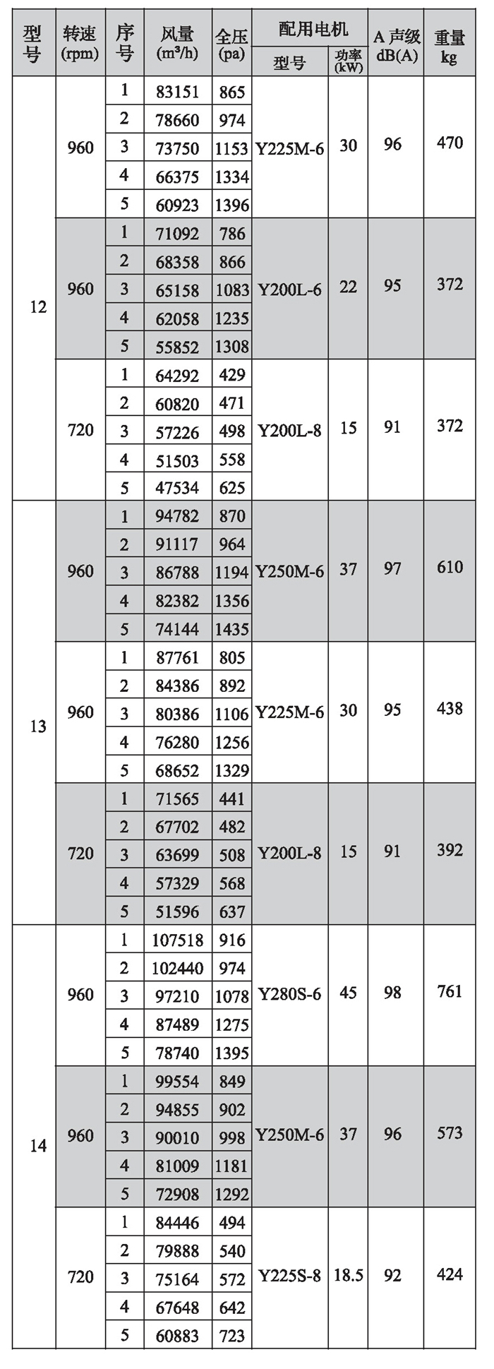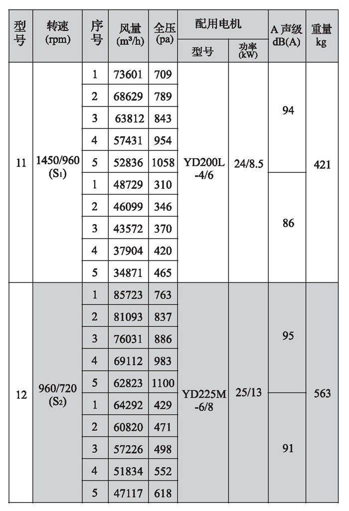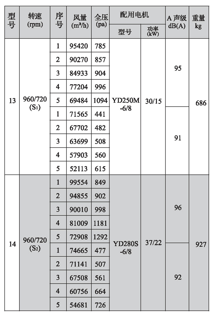 SWF-I系列混流式風機性能參數(shù)(4)