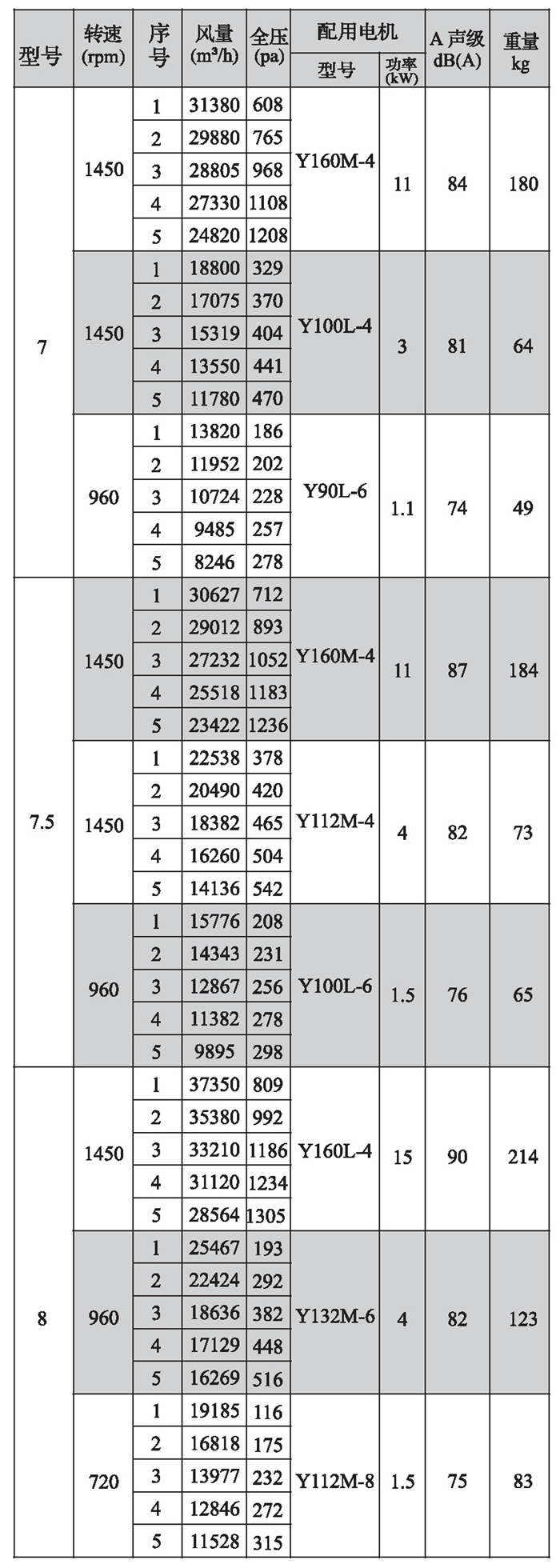 SWF-I系列混流式風機性能參數(shù)(3)