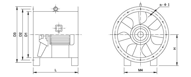 三、SWF-I系列混流式風機外形及安裝尺寸表