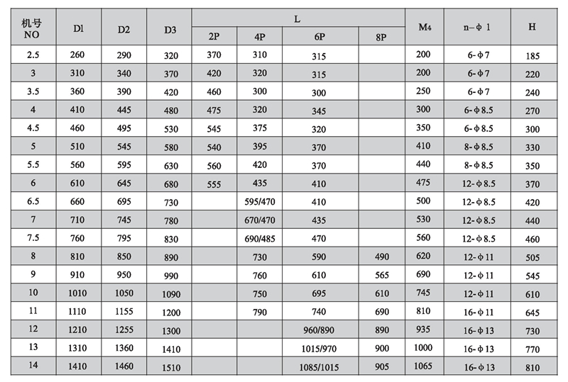 四、SWF-1I系列混流式風機安裝尺寸表