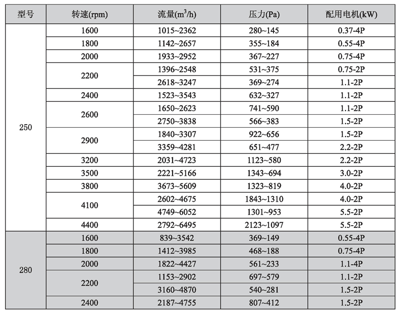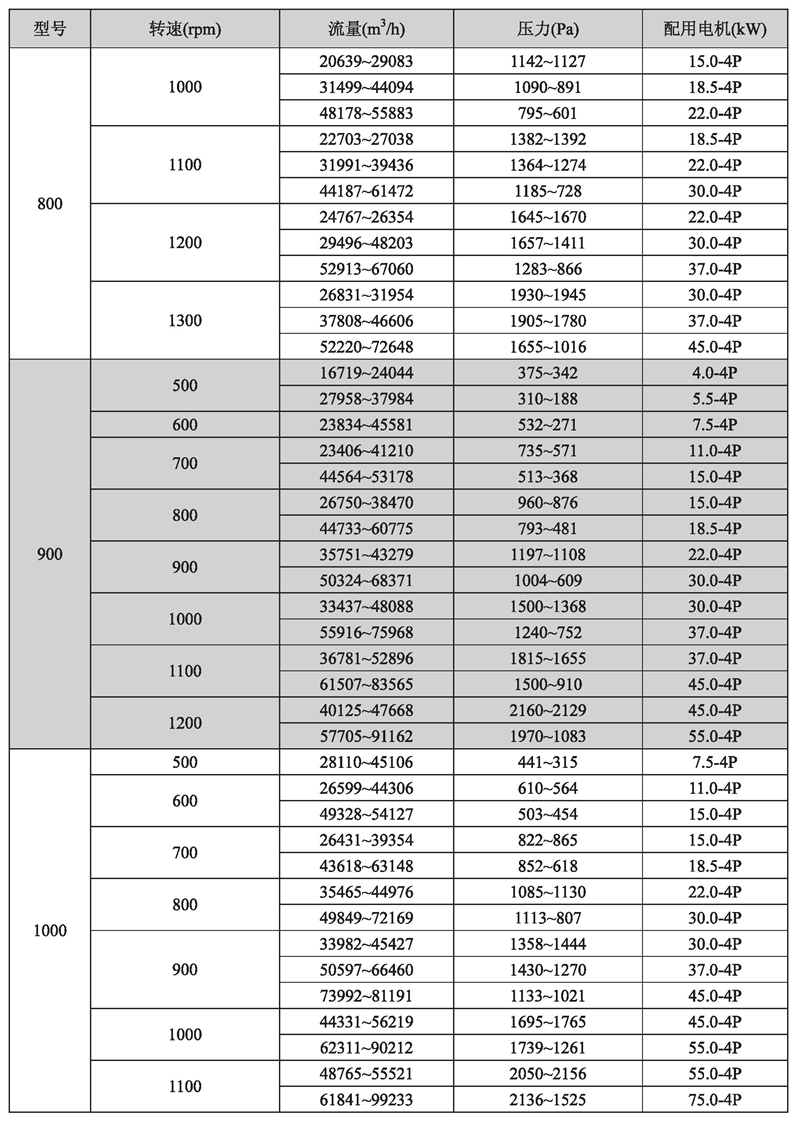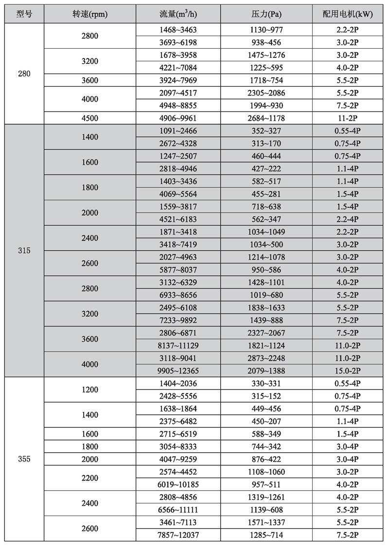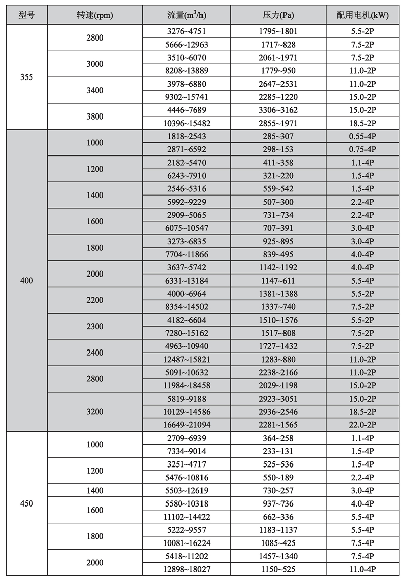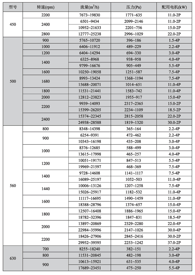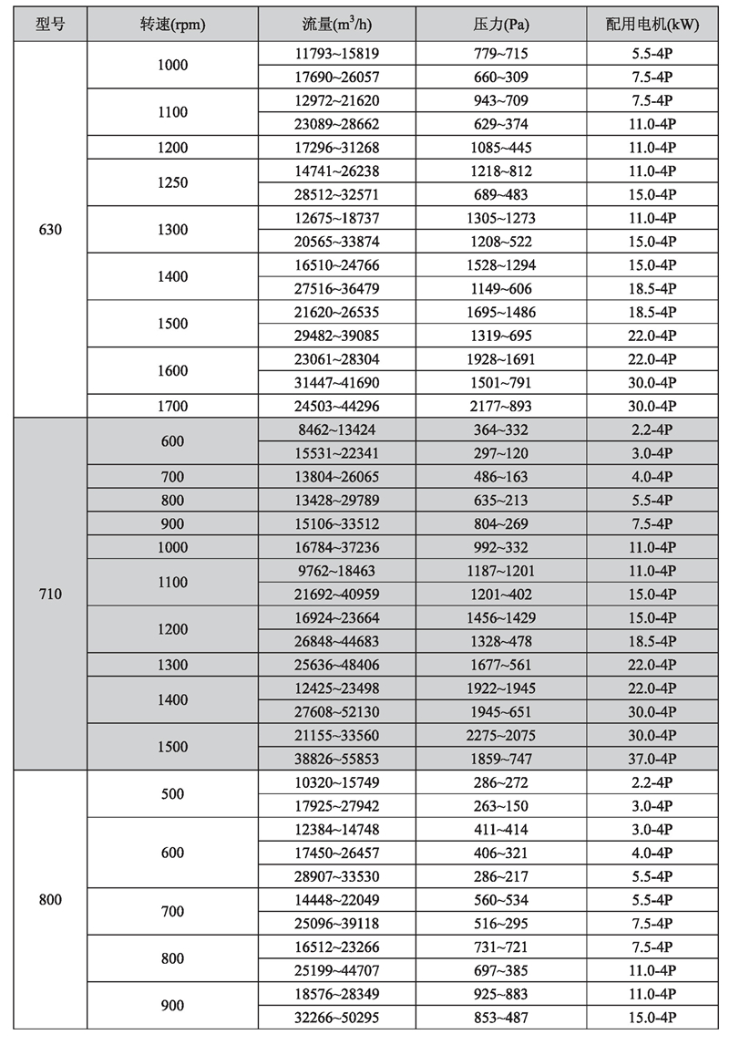 輸送介質: HTFC-V 系列風機輸送介質為空氣及不自然、無腐蝕、不含粘性、附著性、介質所含塵土及顆粒物不大于150mg/m3的其他氣體。氣體溫度一般不超過80℃。